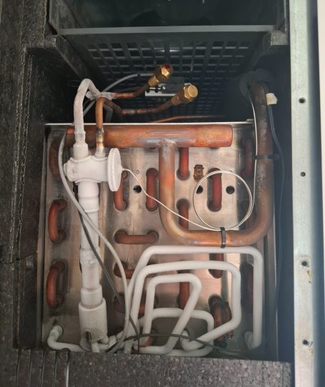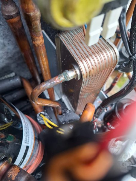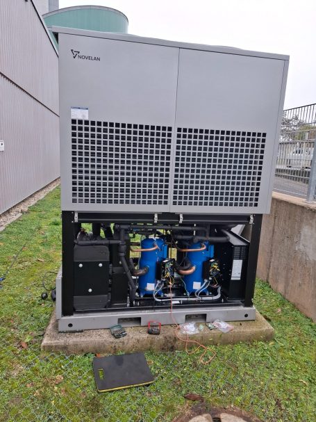 Austausch einer stillgelegten Sole-Wasser-Wärmepumpe mit Verdichterschaden.