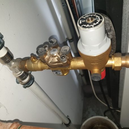 Aufgrund des erhöhten Heizleistungsbedarfs und eines Hochtemperatur-Heizkörpersystems wurde eine Nibe S2125 mit VVM S320 sowie zusätzlicher S135 installiert.